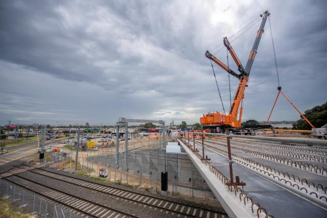 In a single week of heavy lifting, 39 massive concrete beams have been hoisted into place at two level crossing removal sites in Dandenong South. At South Gippsland Highway, crews installed 17 beams to form a rail bridge over the rail line in one weekend. Works are also continuing to upgrade the intersection at Princes Highway. The level crossing is expected to be removed by 2022. At the second site at Greens Road, a rail bridge is being built across the road. More than 17 beams were lifted in place over seven days. The Greens Road level crossing is expected to be gone by 2023. The level crossing removals are hoped to relieve congestion for about 54,000, including freight trucks in the manufacturing hub.