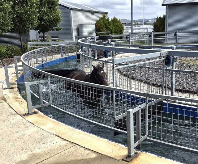 “More often than not it’s the day after a gallop, so just cooling their jets essentially; it’s magnesium-based water as well, it’s the right height, it’s at elbow depth so they’re getting the right amount of work out of it as well, without straining muscles,” she explained with expert detail.